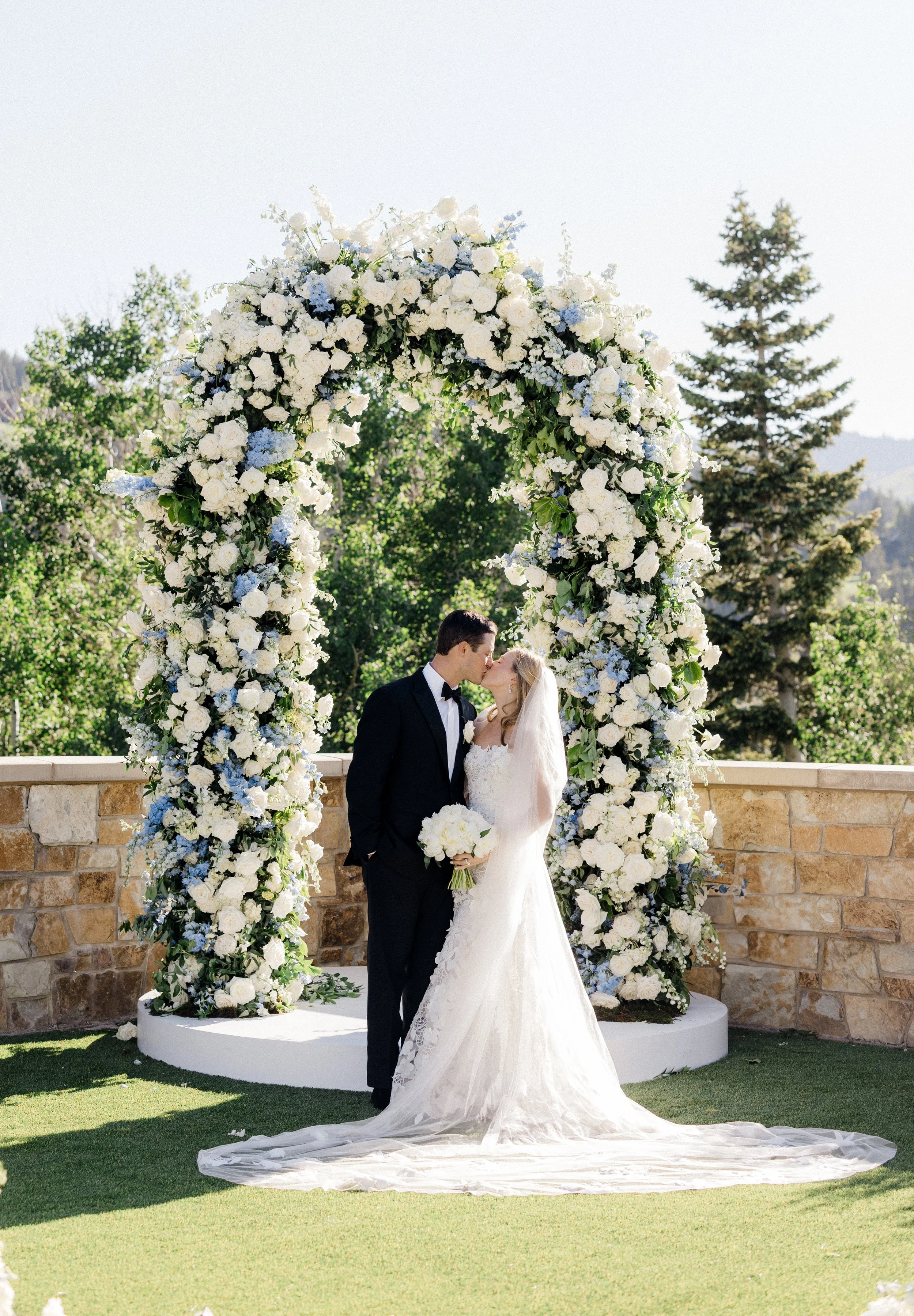 Inspired by the effortless elegance of Cape Cod summers, this wedding was a timeless celebration of hydrangeas en masse. Over 3,000 fresh blooms were thoughtfully woven throughout the day, creating a lush, coastal atmosphere that felt both expansive and intimate. Executing a design of this scale in the Utah summer heat required extraordinary care, precision, and nuance—each stem handled with intention to ensure every hydrangea reached its fullest expression.