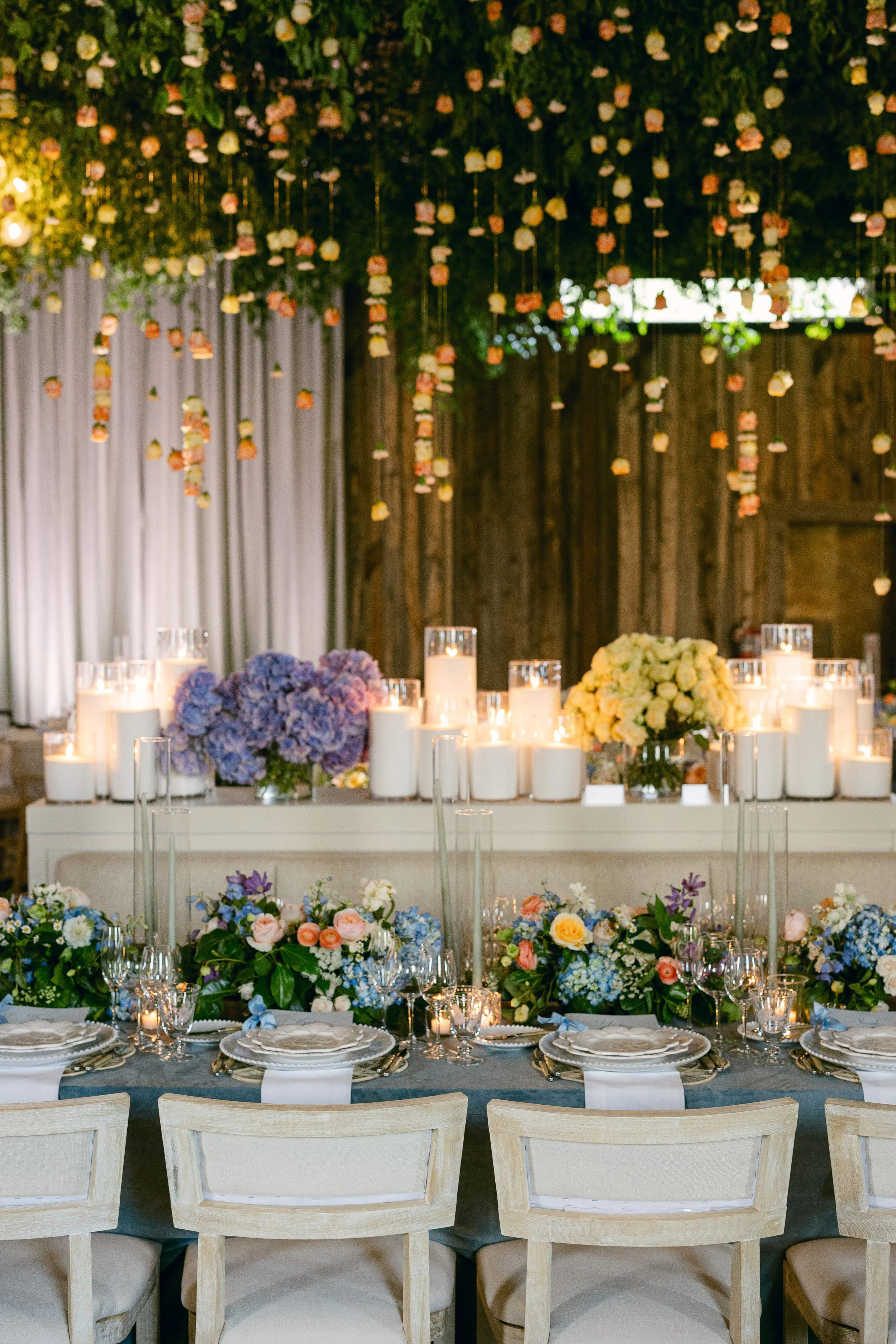 This breathtaking July wedding redefined grandeur, brought to life through over 900 hours of meticulous craftsmanship. Every detail was executed with precision, from the custom greenery ceiling—featuring an astonishing 7.5 miles of greenery—to the striking 18-foot handcrafted tree with a canopy stretching over 30 feet. These awe-inspiring installations were among our favorite elements, transforming the space into a truly immersive experience. It was an honor to create such a stunning setting for an unforgettable celebration.
